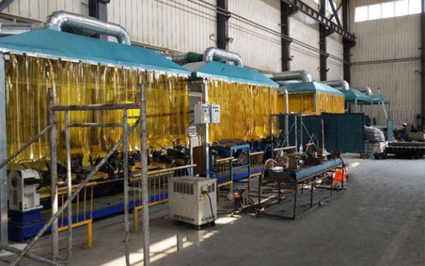 吹吸式焊烟净化系统,是在车间的一侧布置回风管道和送风管道,另外一侧反向对称布置送风管道和回风管道,充分利用除尘器本身的动力源,回风管道捕捉经送风管道吹到铝合金蛋格型回风口附件的焊接烟尘后,经过除尘器过滤后,洁净的空气在经过排风风机送到送风管道,经过铝合金鼓型喷流风口再将本侧面的焊接烟尘吹到对面,在焊接区域的上方形成一层焊接烟尘捕捉的气幕,周而复始,循环过滤。